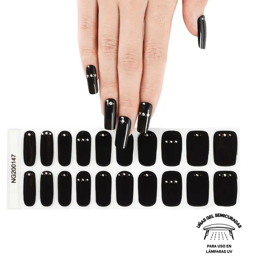 Uñas Gel Semi Curado Manicure - Negro Corona De Brillitos