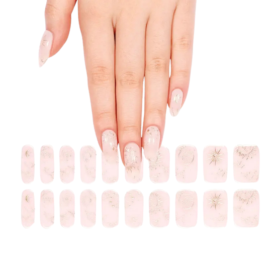 Uñas Gel Semi curado Manicure - Rosa Pastel Misticas Sol y Luna Dorados