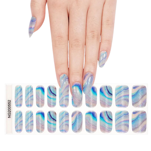 - Aplica el sticker de gel. Ponlo con cuidado desde la base hacia la punta, evitando burbujas.