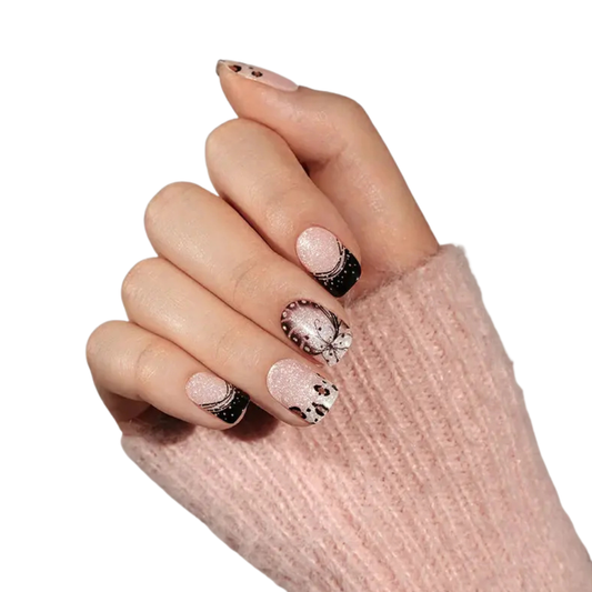 Uñas Gel Semi curado Manicure - Francesas Mariposas Dark