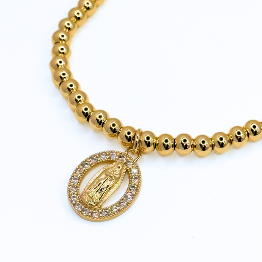 Pulsera Cuentas Doradas Virgen María - Gold