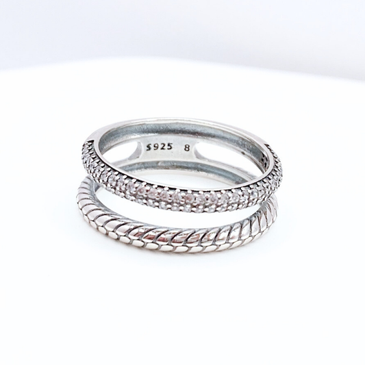 Anillo Solitario Medio Cintillo Pavé - Silver