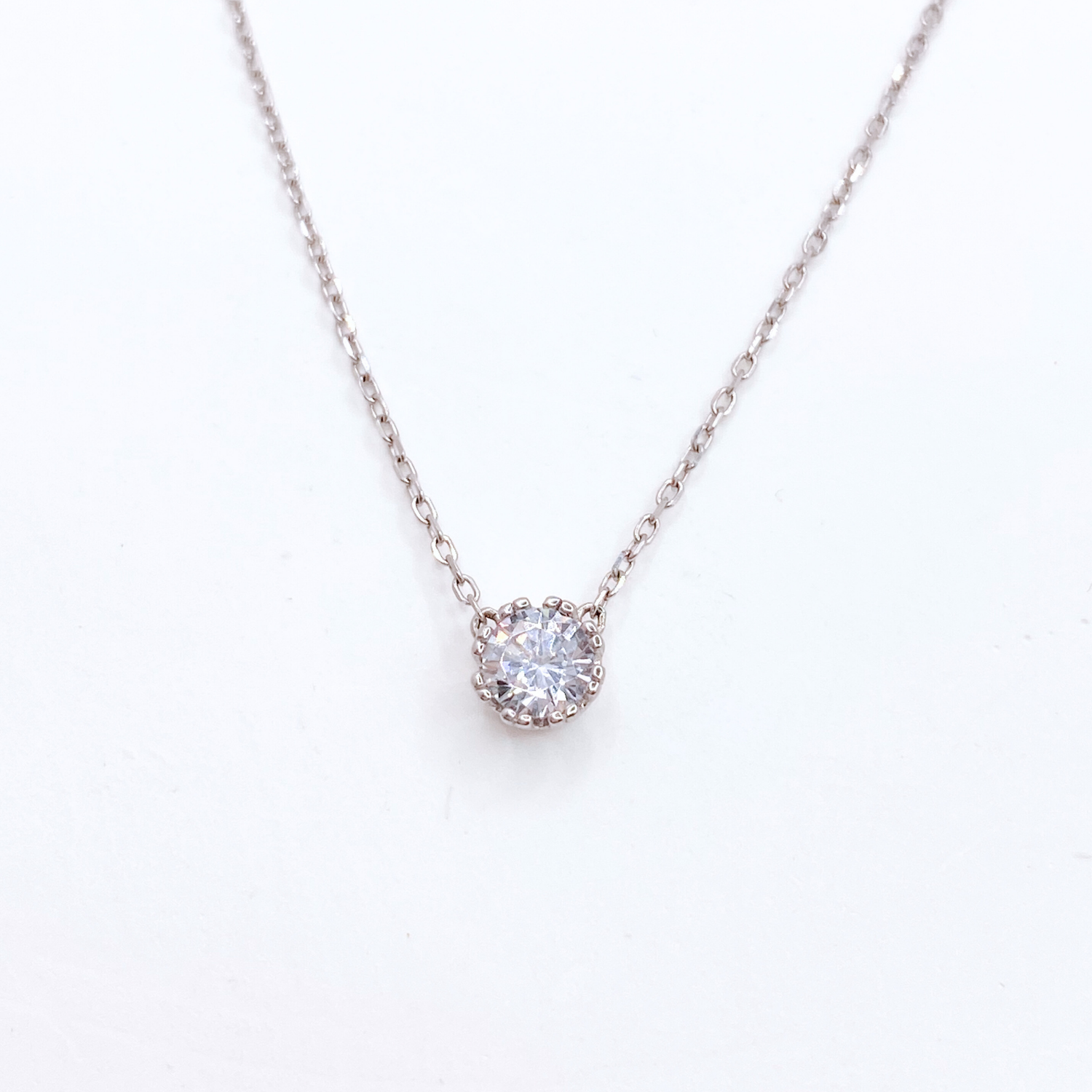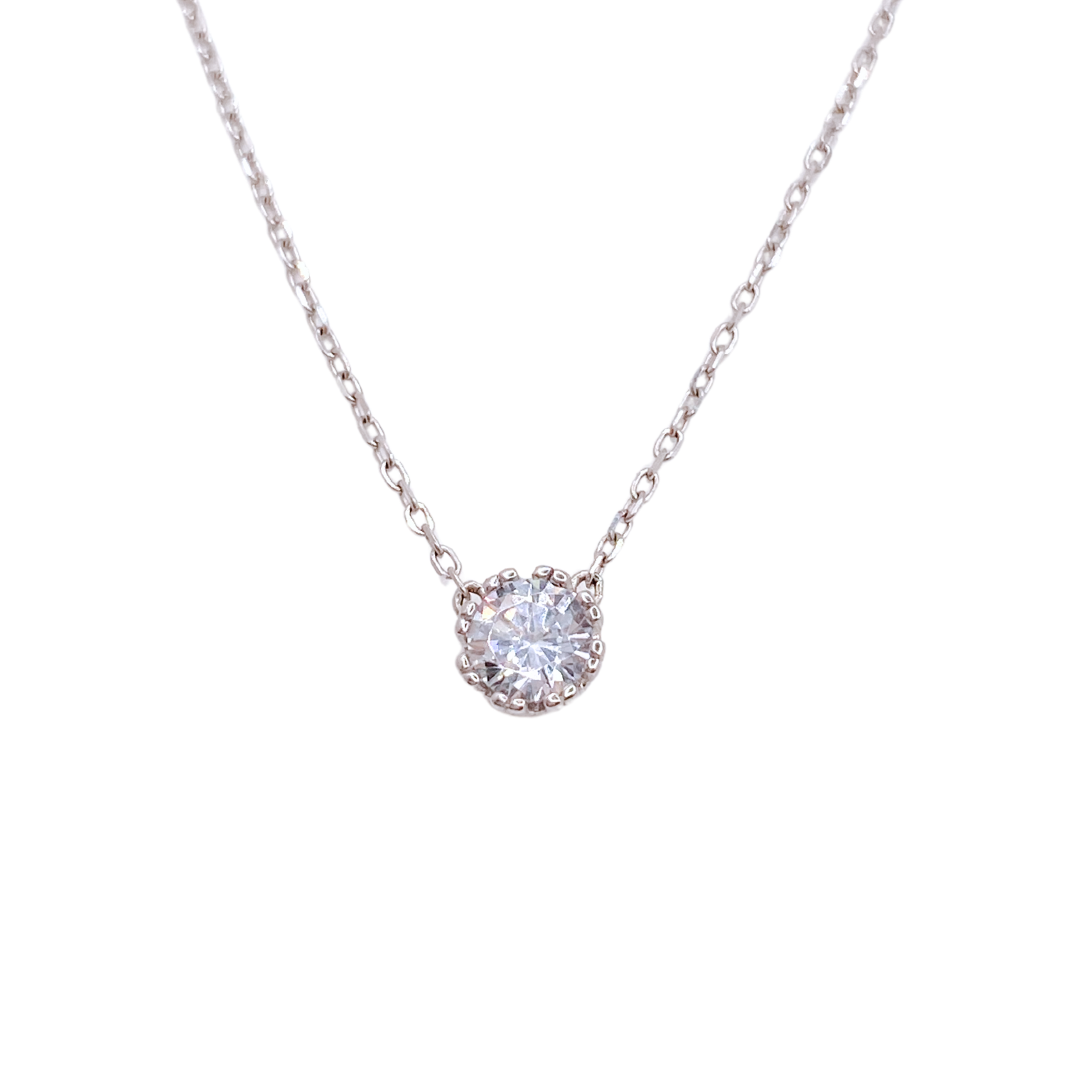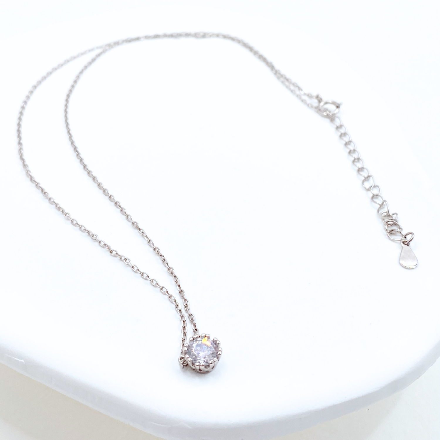 Un diseño minimalista y versátil. Este collar de Plata 925 con un circonio blanco de 5 mm aporta un brillo sutil que realza cualquier estilo. Ideal para el día a día o como un detalle especial para regalar.