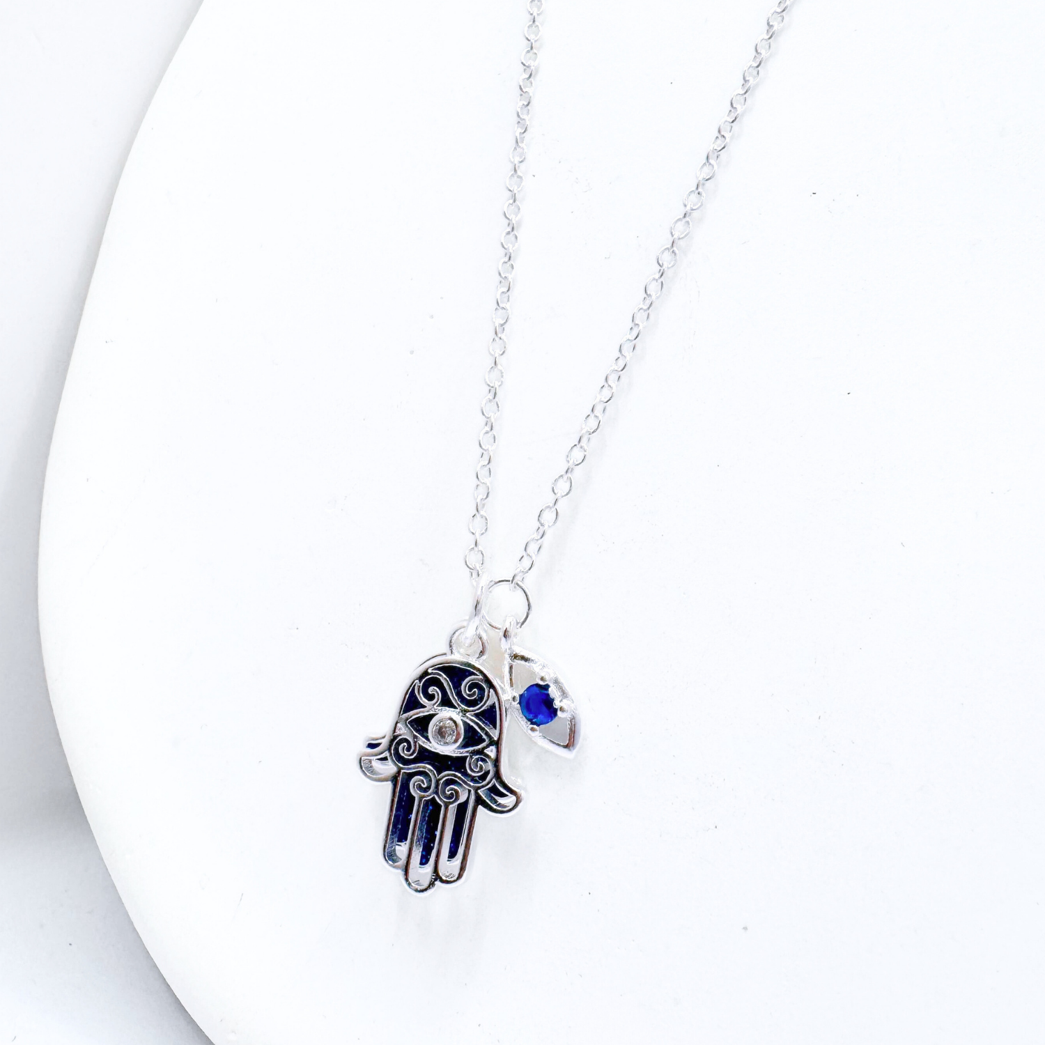 Amuleto de protección y energía positiva. Nuestro Collar Mano de Fátima en Plata 925, con un detalle de circonita azul en el centro, es un símbolo de resguardo y fortaleza. Perfecto para quienes buscan equilibrio y bienestar en su día a día.