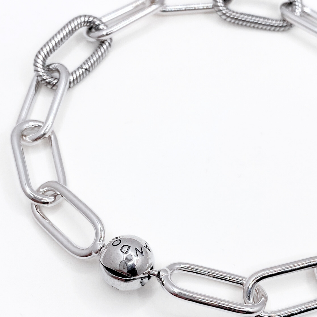 ¡Personaliza tu estilo con esta pulsera de eslabones para 3 charms! Diseñada en plata 925, es compatible con charms tipo Pandora, permitiéndote crear combinaciones únicas. Su cierre de bola a presión asegura un ajuste cómodo y seguro, manteniendo tus charms en su lugar.