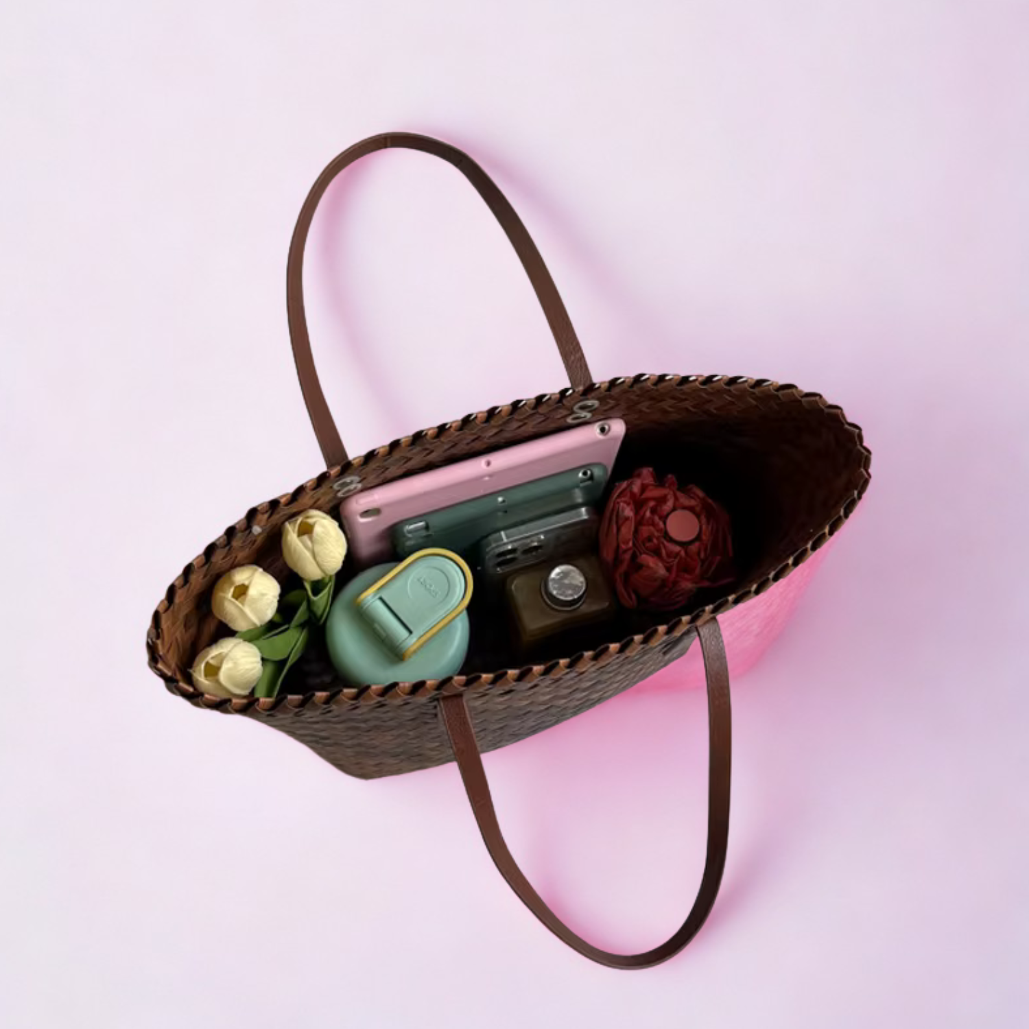 Este tote destaca por su ligereza y capacidad, ofreciendo un equilibrio perfecto entre funcionalidad y estilo. Su diseño trenzado artesanal lo convierte en una pieza única que complementa cualquier outfit con un toque cálido y natural.