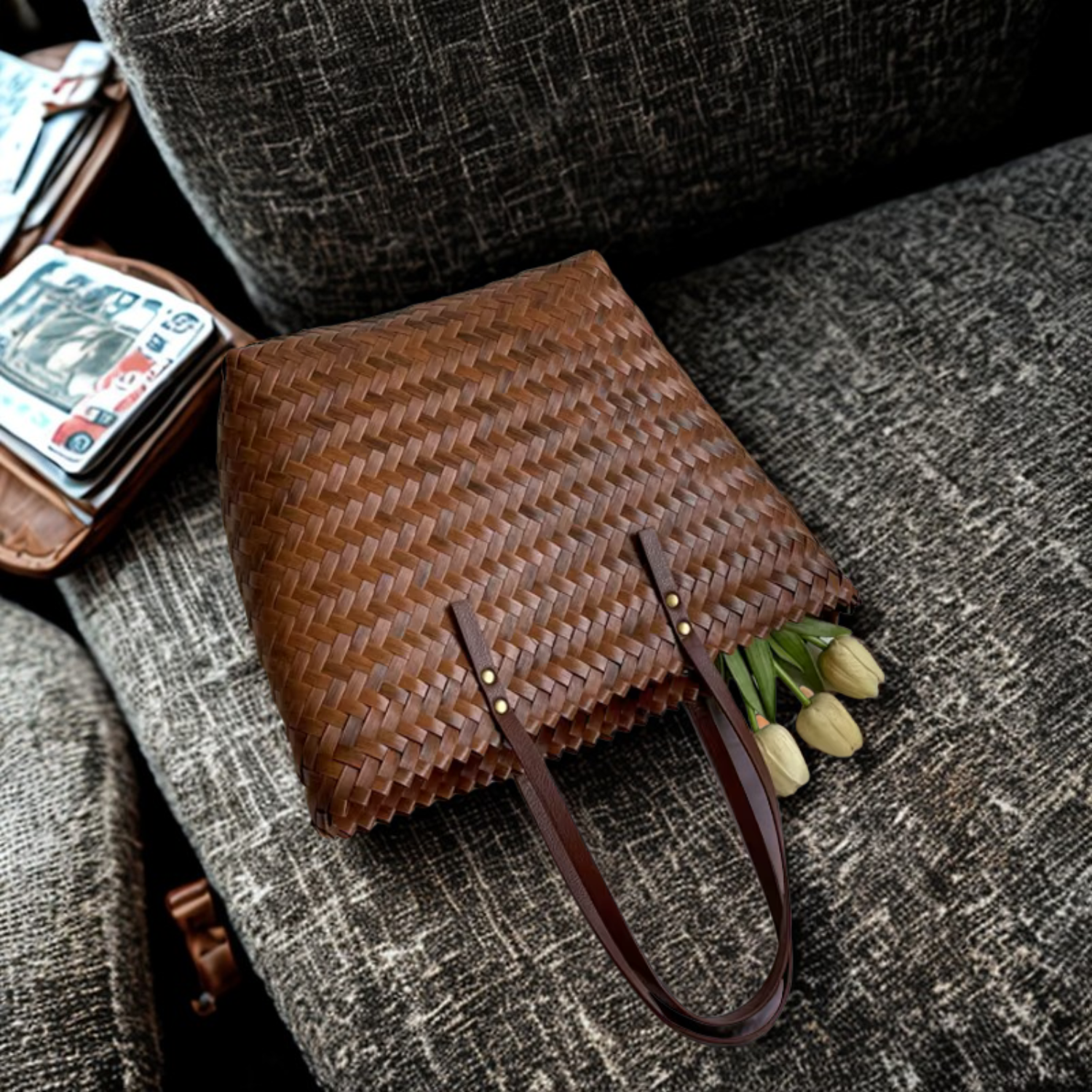 Este bolso tipo tote combina diseño artesanal, estilo natural y una estructura firme ideal para acompañarte en cualquier ocasión. Su textura trenzada y tono café le otorgan un aspecto elegante y atemporal, perfecto tanto para looks veraniegos como urbanos.